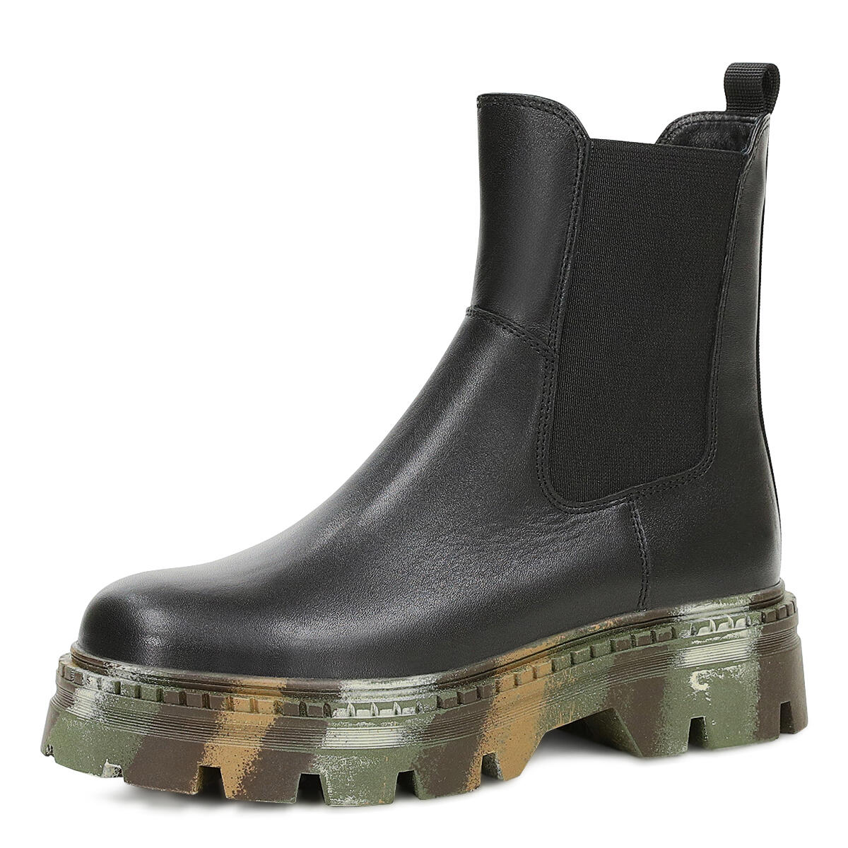 Черный+хаки / Натуральная кожа гладкая+текстильный материал